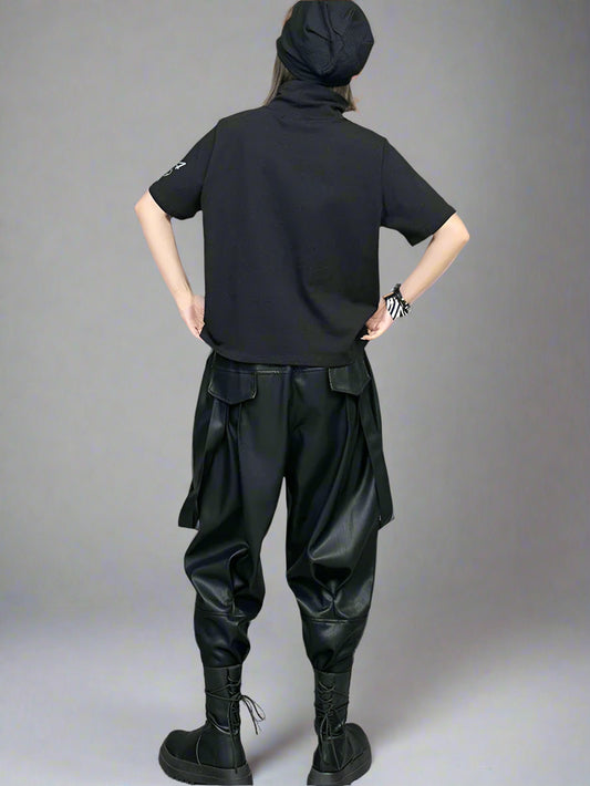 Rebel Edge Vegan Leather Cargo Trousers