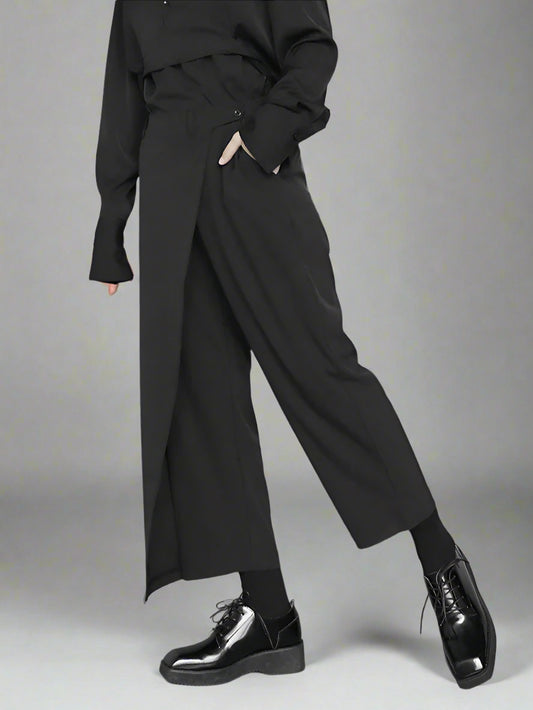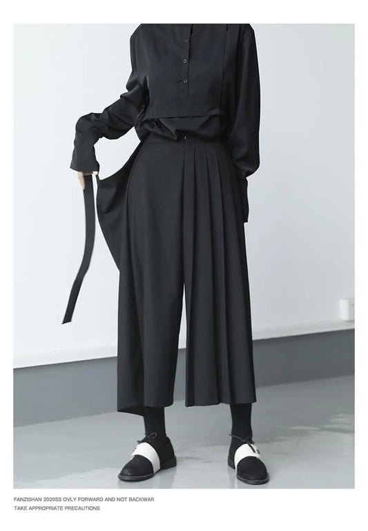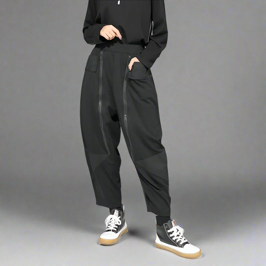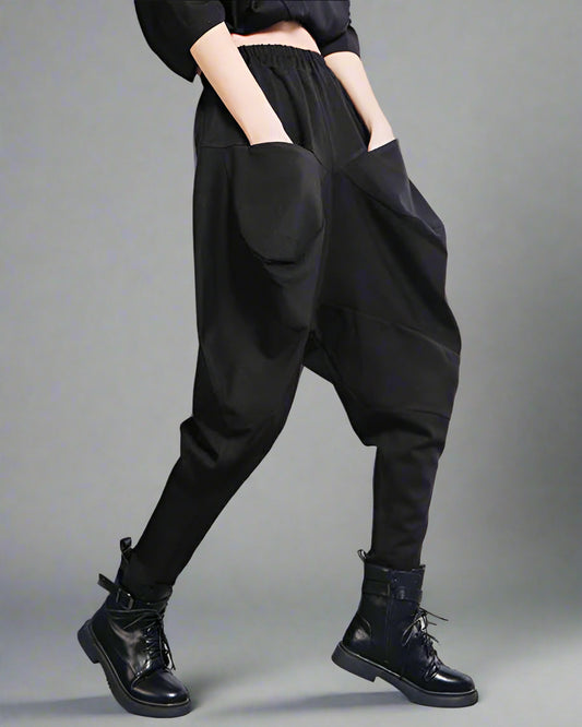 Casual Minimal Goth Wide-Legged Harem Trousers