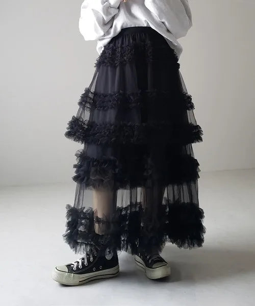 Dark Romance Ruffled Maxi Skirt – Midnight Elegance