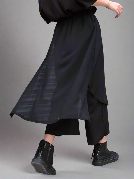 Layered Elegance Capri Trousers with Chiffon Overlay