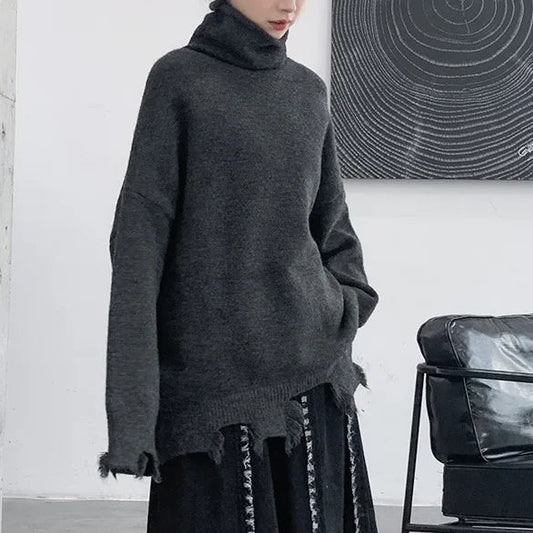 Dark Edge Turtleneck Pullover – Gothic Charisma in Dark Grey