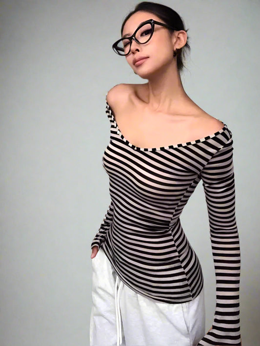 Striped Elegance Off-Shoulder Top